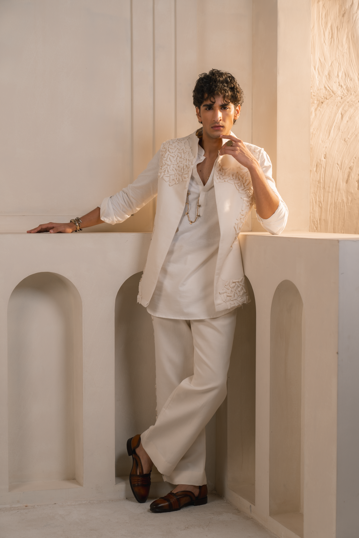 Each ensemble is custom-made with precision and care. Please allow 30–35 business days for production and dispatch. Delivery timelines may vary depending on the shipping method selected at checkout. As all outfits are made-to-measure, we do not offer returns or exchanges.