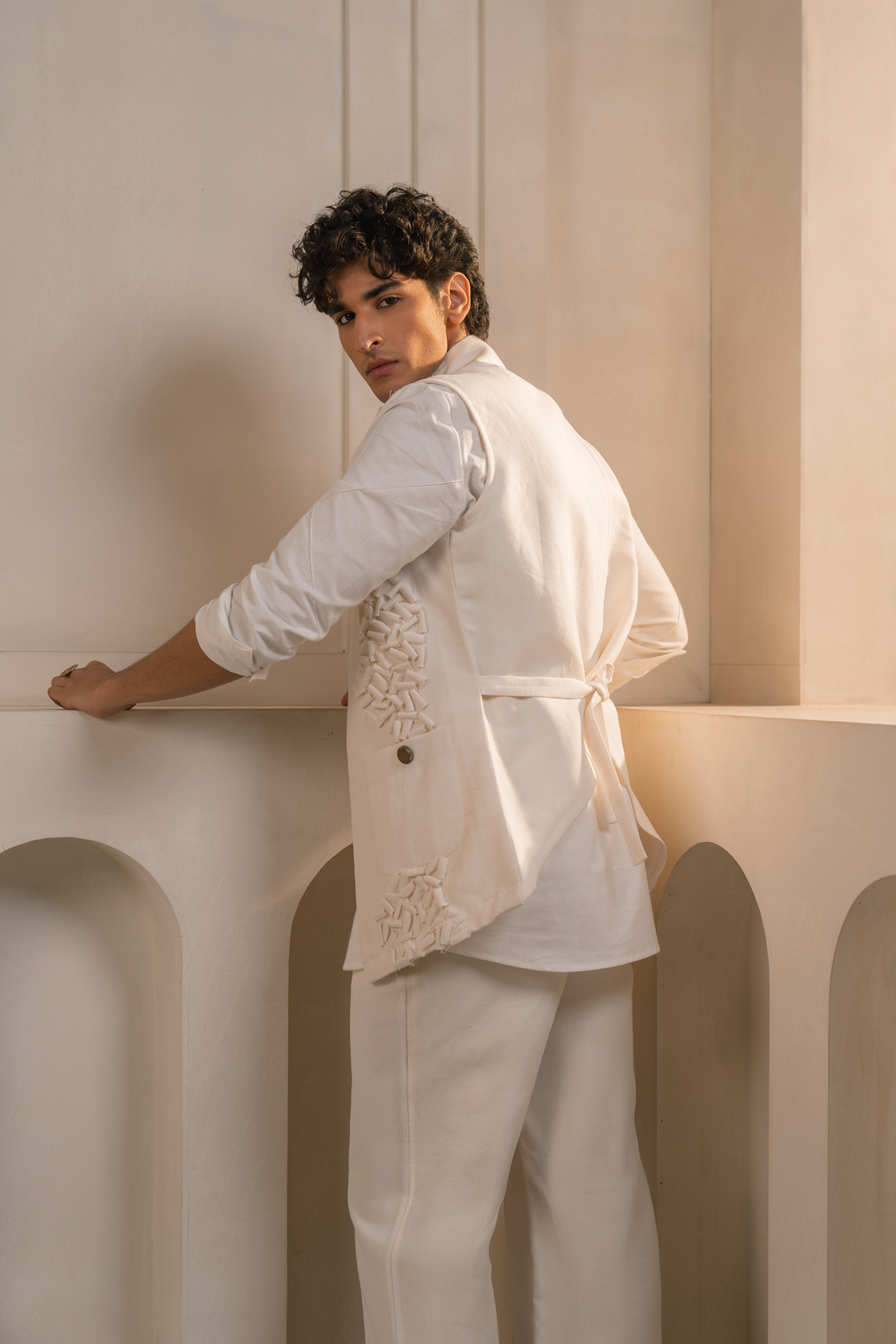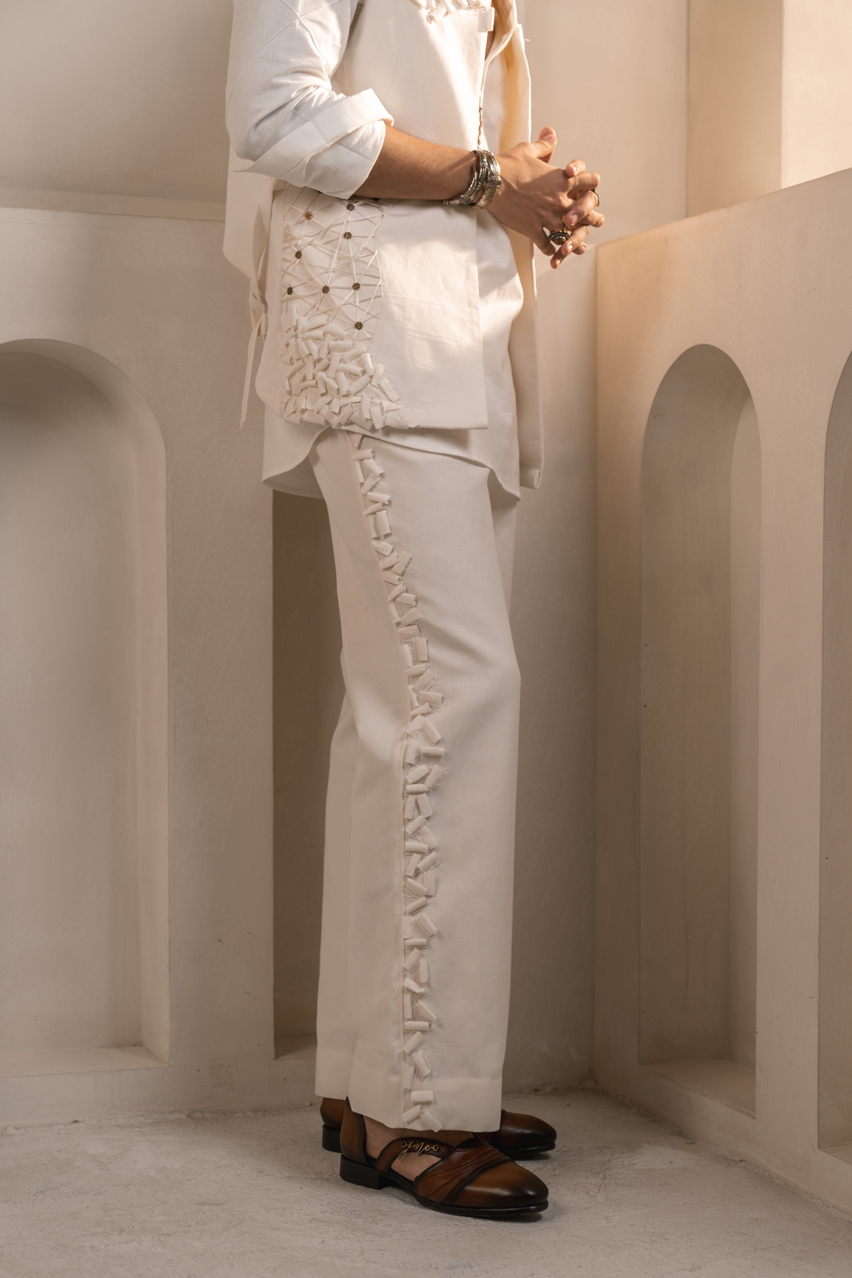 Elevate your occasion wear with our elegant Valencia Shacket Set in Ivory, a perfect blend of modern tailoring and timeless craftsmanship. This 3 piece set is crafted from a premium cotton-linen blend, offering a breathable and comfortable fit.